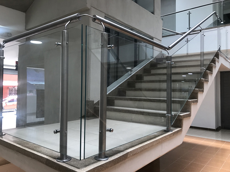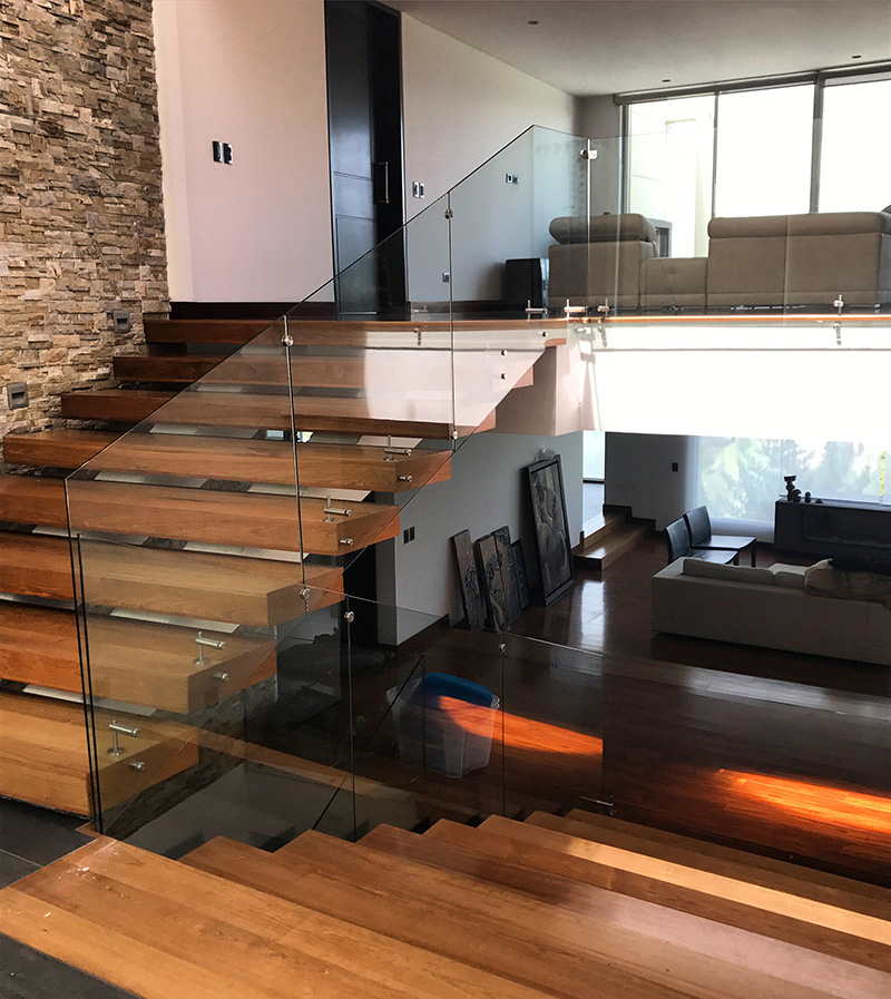 BARANDA EN VIDRIO CON ACERO Y MADERA
