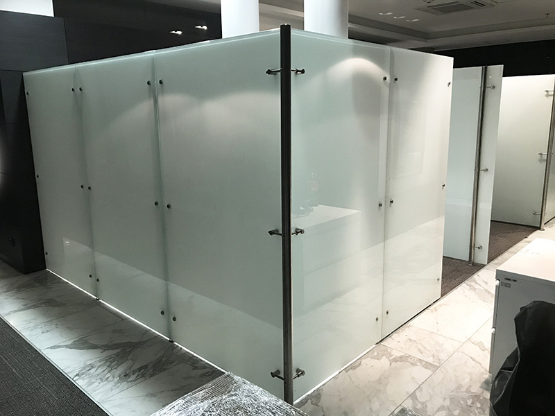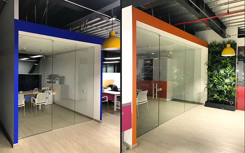 DIVISIÓN DE OFICINA EN VIDRIO CON ACCESORIOS EN ACERO