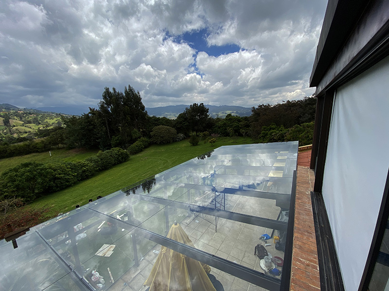MARQUESINA CON ESTRUCTURA METALICA Y VIDRIO LAMINADO INCOLORO